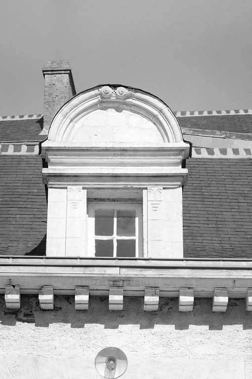 Façade principale, vue de détail de la lucarne.Immatriculation