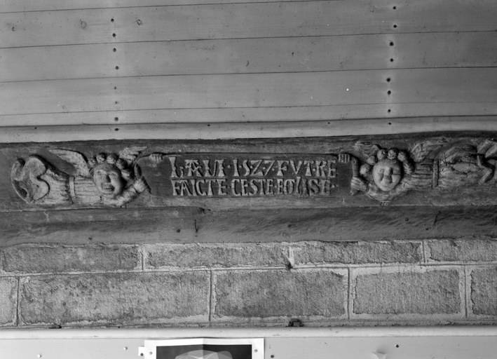Sablière du porche, mur ouest (anges tenant une banderole)Immatriculation