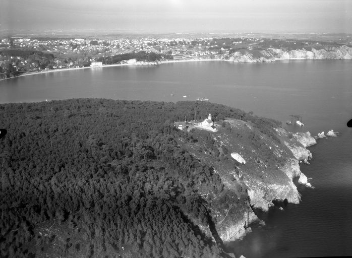 Crozon : vue aérienne du phare du Kador, anse de Morgat en 1971Immatriculation