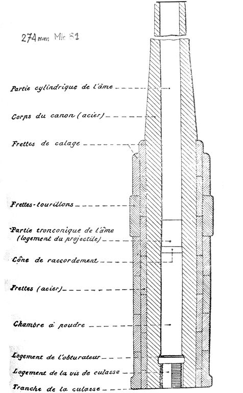Coupe d'un canon de 274 mm modèle 1881Immatriculation