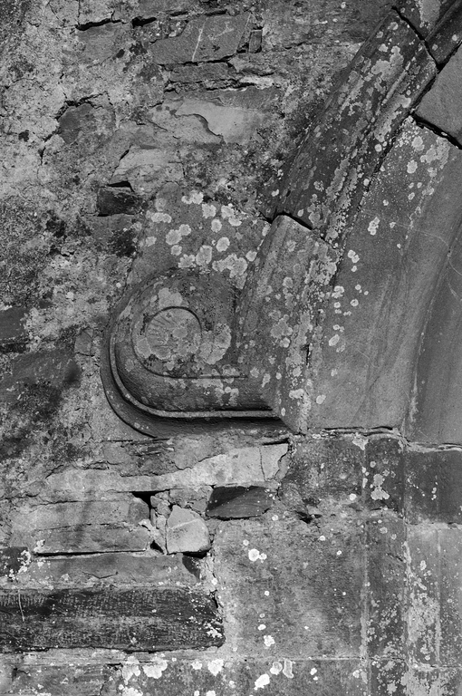 Tour est, vue de détail de pierre sculptée.Immatriculation