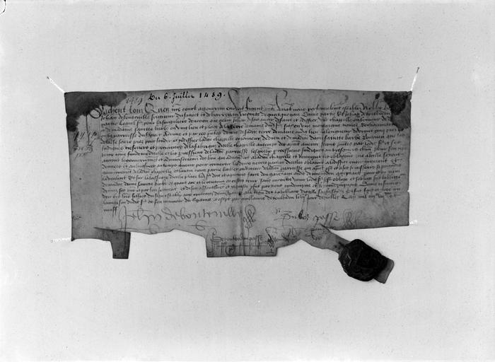 Acte de fondation de la chapelle, 6 juillet 1489, verso (Me Ezvan, notaire au Faouët).Immatriculation