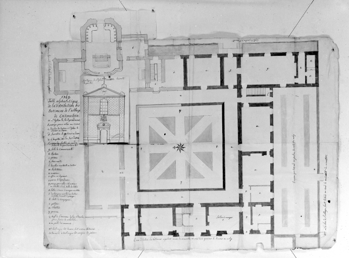 Plan des bâtiment avec une retombe : frontispice de l'église nouvelle exécutée en partieImmatriculation
