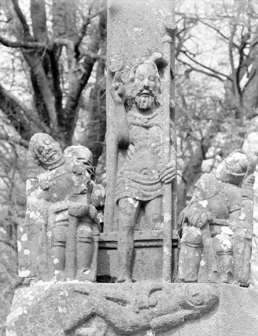 Calvaire, face est, socle, Résurrection, détail du ChristImmatriculation