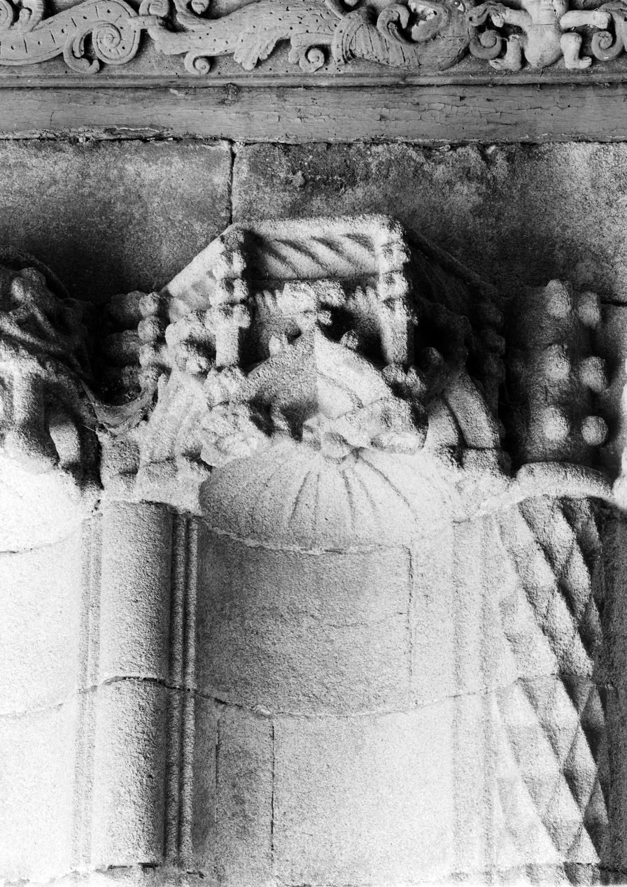 Porche sud, décor du chapiteau d'une niche ouest.Immatriculation