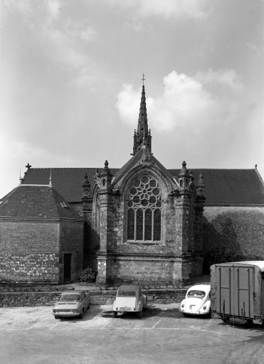 Plomodiern, église paroissiale Saint-Mahouarn : façade est, état en 1972Immatriculation