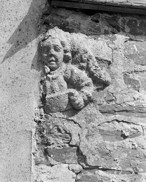 Saint-Ségal, église paroissiale Saint-Séverin : fragment sculpté réemployé, état en 1972Immatriculation
