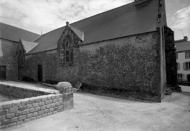 Plomodiern, église paroissiale Saint-Mahouarn : façade nord, mur du bas-côté, état en 1972Immatriculation