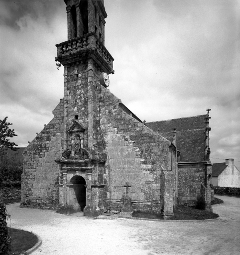 Quéménéven, église paroissiale Saint-Ouen : façade ouest, état en 1972Immatriculation