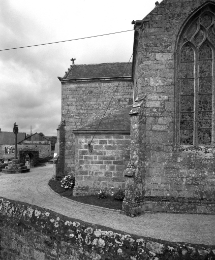 Quéménéven, église paroissiale Saint-Ouen : façade sud, partie est, état en 1972Immatriculation