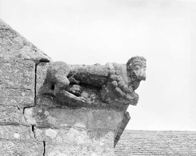 Façade ouest, crossette figurée du rampant sudImmatriculation
