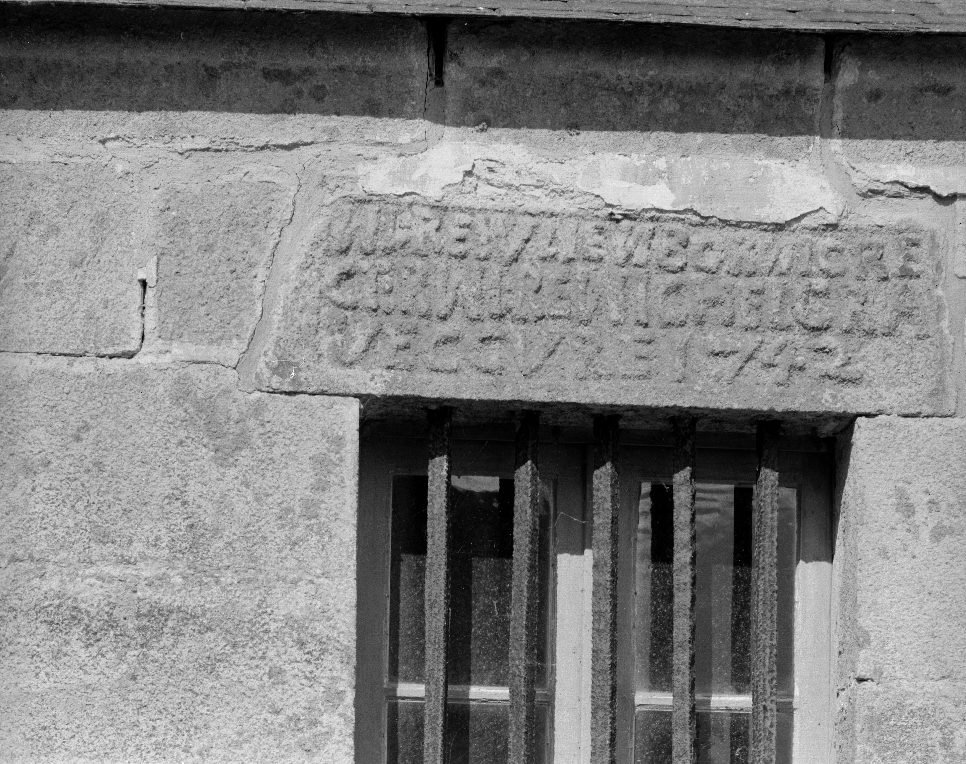 Façade est, sacristie, détail inscription nord-estImmatriculation