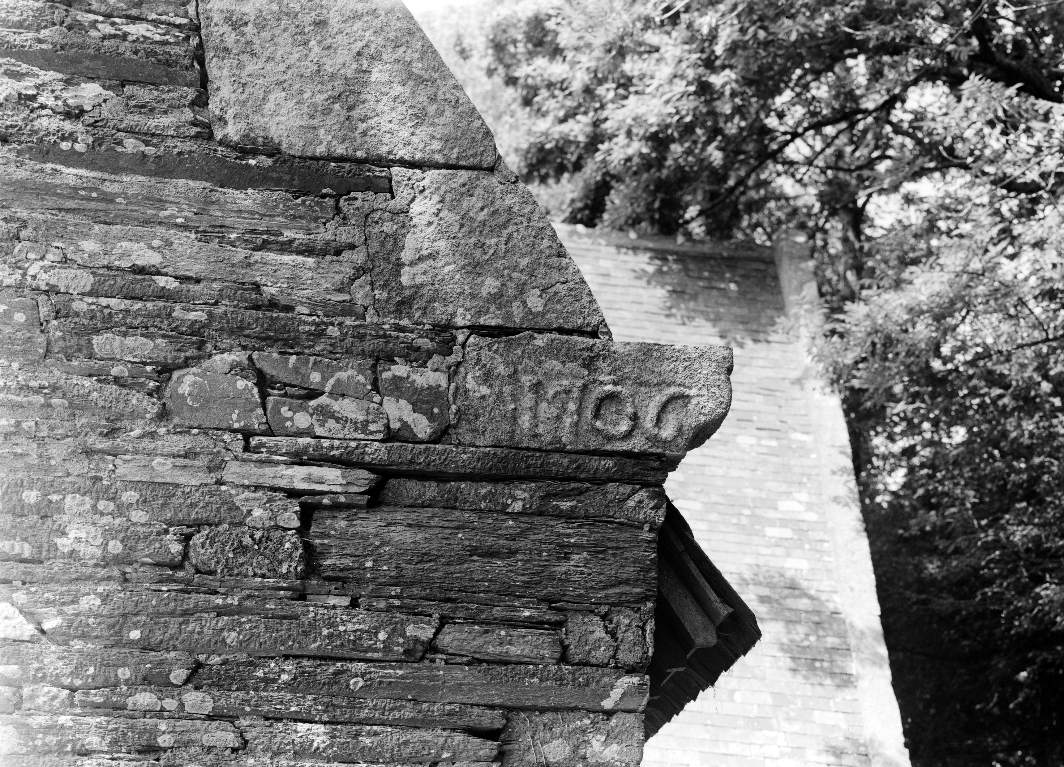 Façade sud, bras de transept, détail crossette droite avec date.Immatriculation