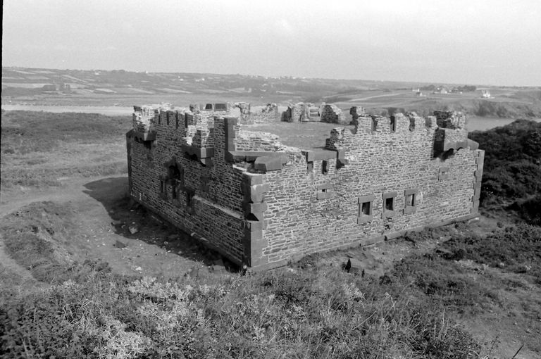 Vue du corps de garde crénélé de l'île de l'Aber depuis la batterie en 1972Immatriculation