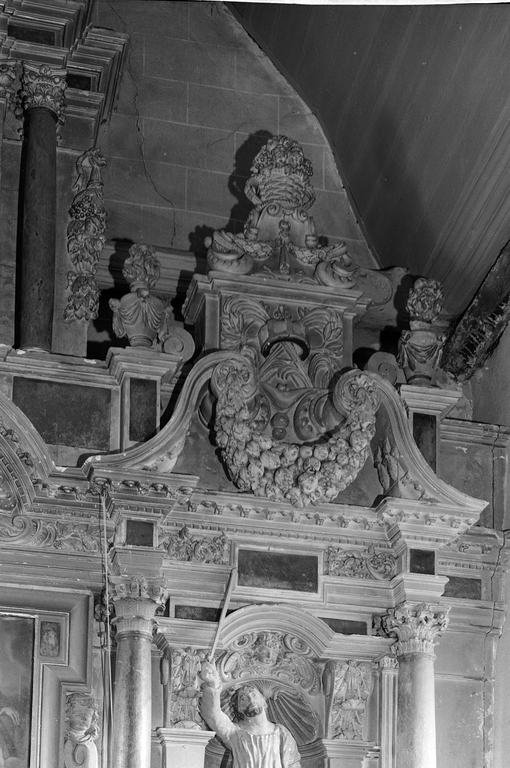 Retable du choeur, niche et couronnement de l'aile droite.Immatriculation