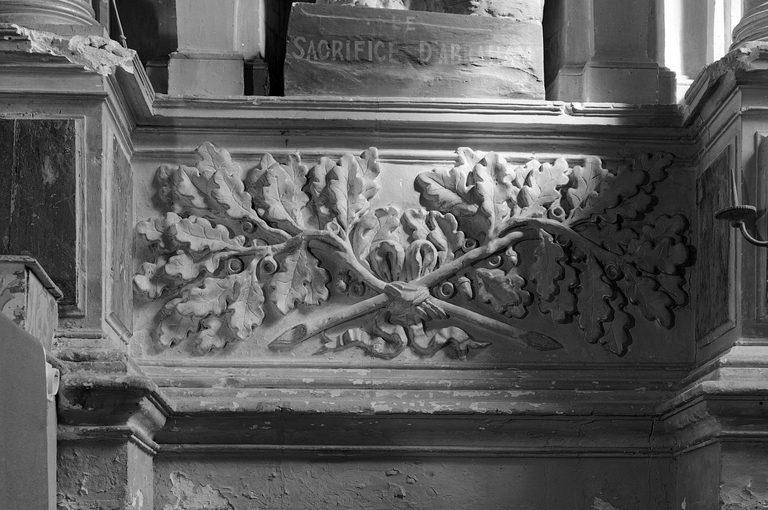 Retable du choeur, stylobate aile droite, vue générale.Immatriculation