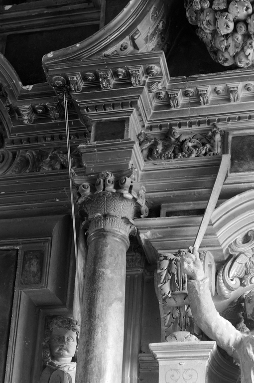 Retable du choeur, colonne gauche et fronton aile droite.Immatriculation