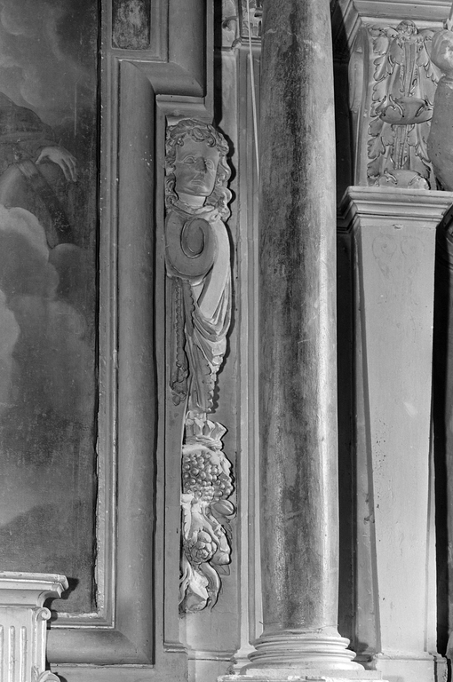 Retable du choeur, aileron du corps central.Immatriculation