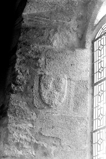 Intérieur, choeur, mur sud, fenêtre : détail de l'écu.Immatriculation