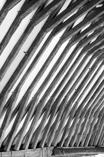 Intérieur, nef, charpente : détail du versant Nord.Immatriculation