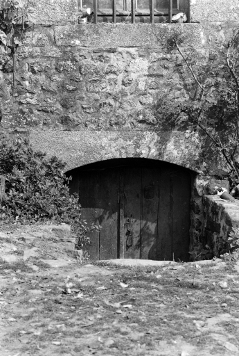 Façade sud, détail de la porte du sous-sol.Immatriculation