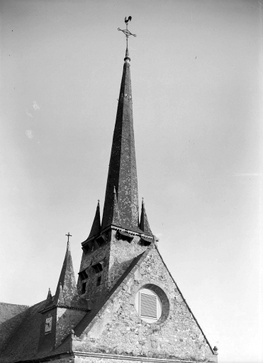 Elévation est, clocher : vue générale.Immatriculation