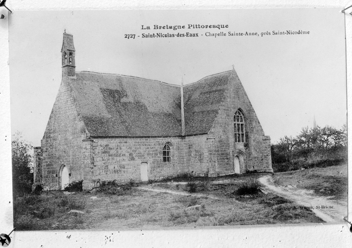 Carte postale ancienne - Chapelle Sainte Anne transférée à Pont-Calleck - Vue générale de la chapelle prise du sud-ouest (Archives départementales d'Ille-et-Vilaine)Immatriculation