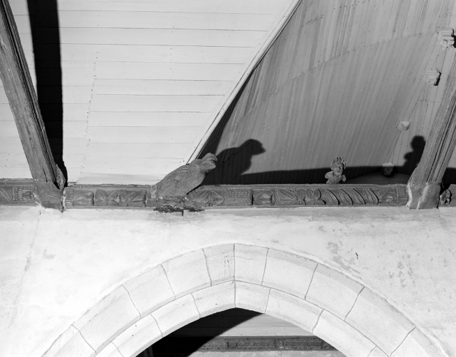 Décor de charpente : 18 sablières, 8 blochets, 6 poinçons et entraits,