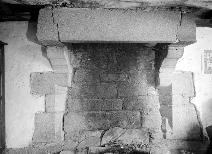 Logis, rez-de-chaussée : cheminée de la cuisine (état en 1973)Immatriculation