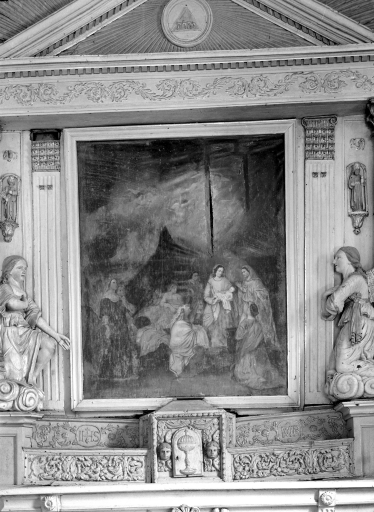 Ensemble du maître autel : autel, tabernacle, retable, tableau d'autel (Naissance de la Vierge),