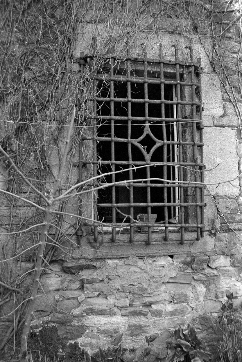 Minihy-Tréguier : manoir de Saint-Renaud, façade sud, détail de la fenêtre du rez-de-chaussée et de sa grille défensive, photographie de 1973Immatriculation
