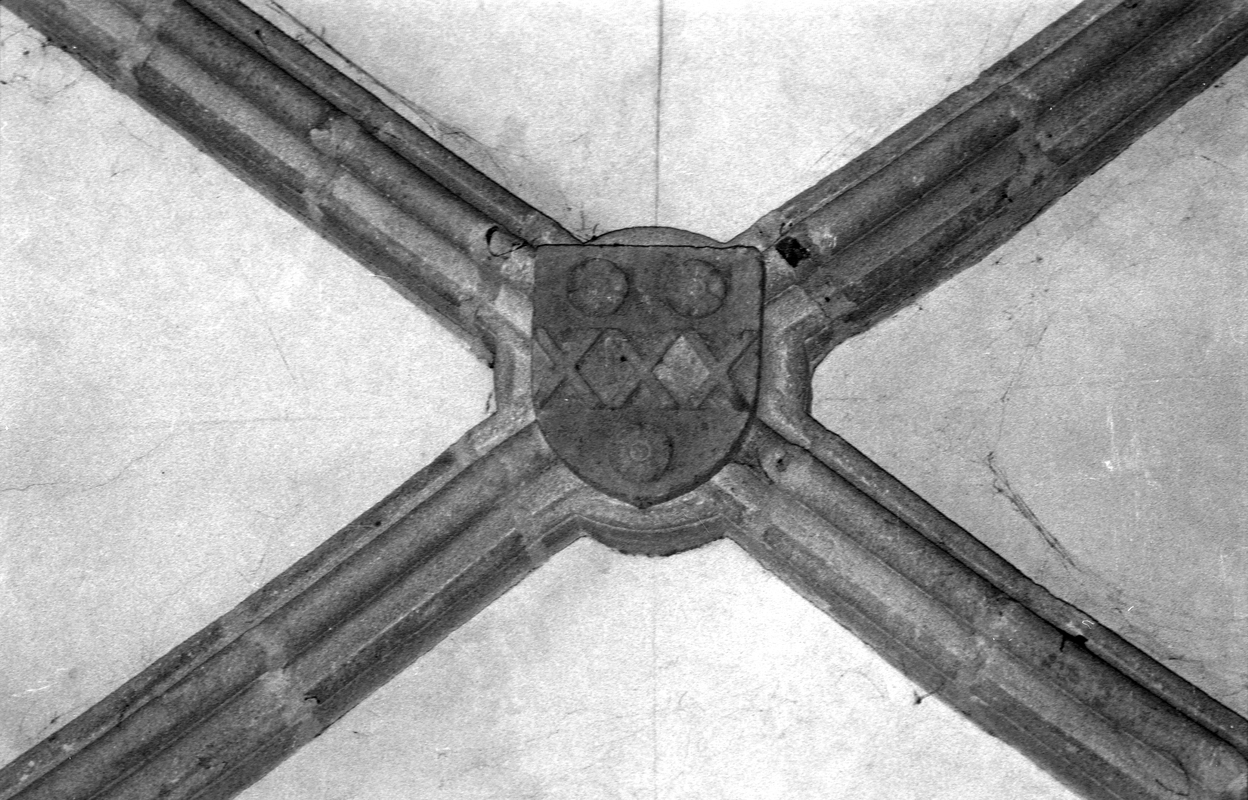 Minihy-Tréguier, rue de l'Église : église Saint-Yves, détail d'une clé de voûte armoriéeImmatriculation