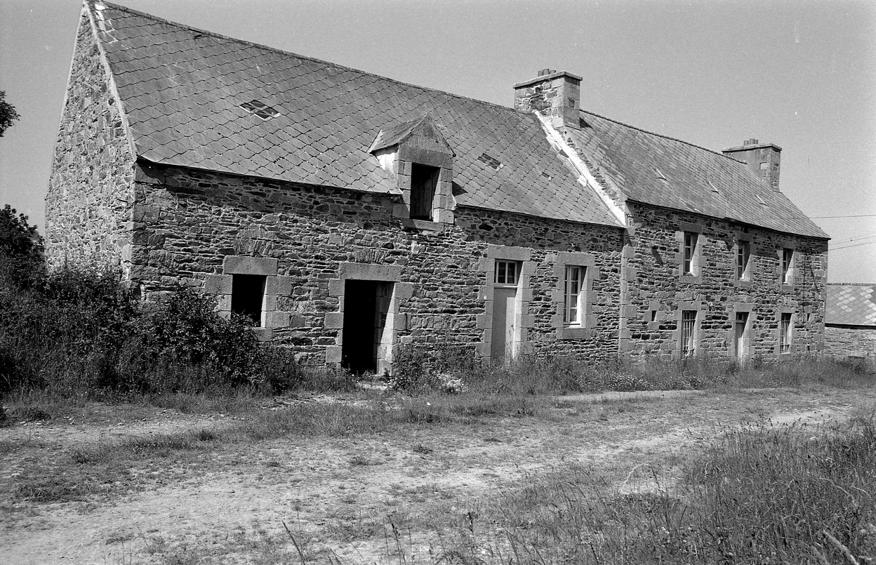 Minihy-Tréguier : manoir de Keroudot, élévation sud (la façade arrière conserve une tour d'escalier et des ouvertures anciennes), photographie de 1973Immatriculation