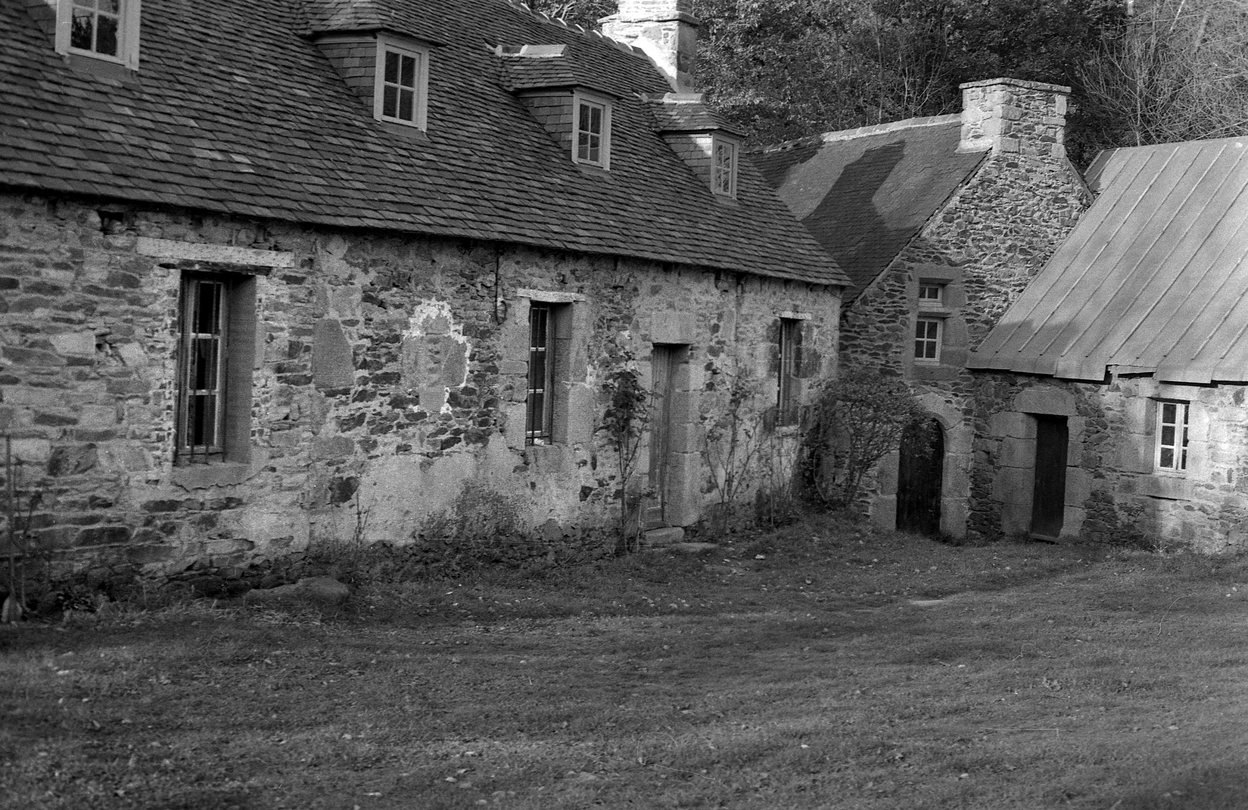 Minihy-Tréguier : moulin à eau de Kerzéhan sur le Guindy et logis, vue générale depuis le sud, photographie de 1973Immatriculation