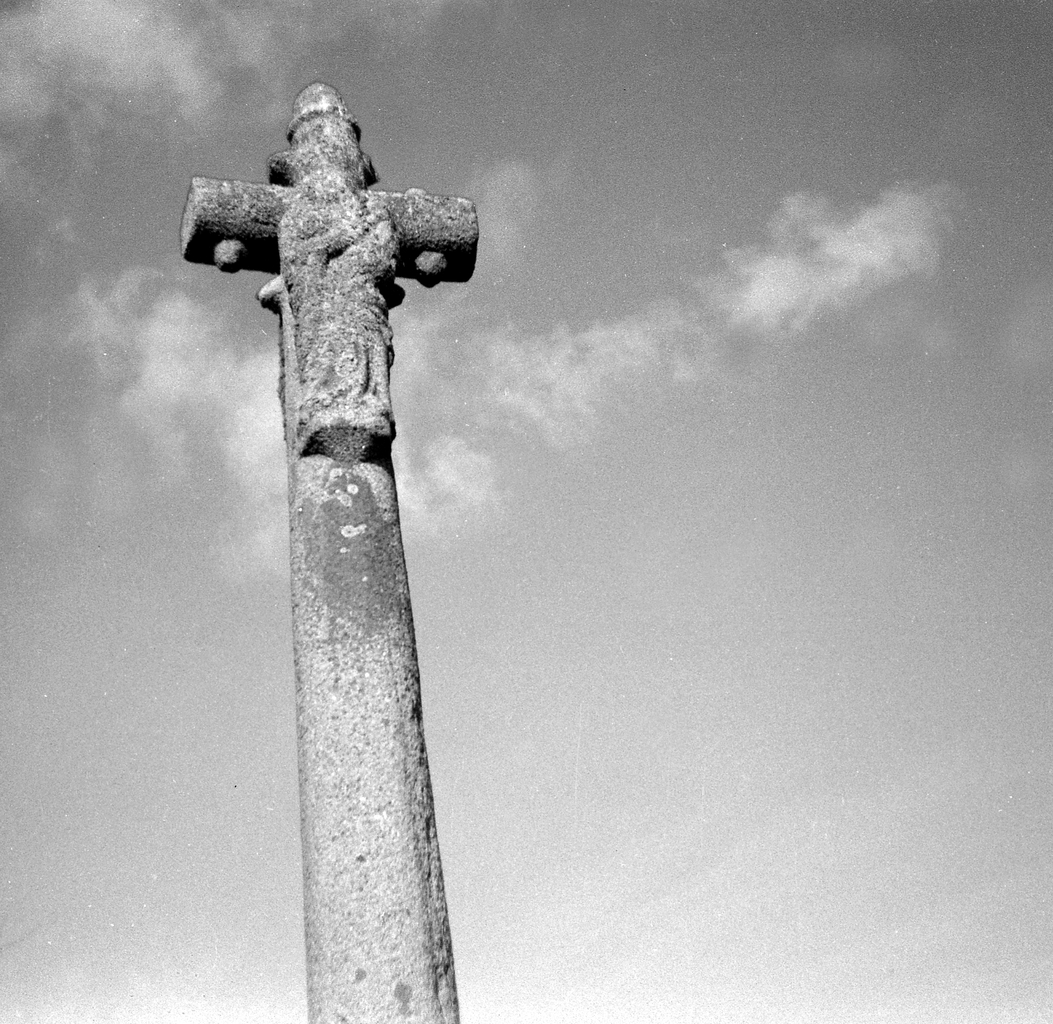 Minihy-Tréguier, Kerfollic : croix dite Croaz Ru, détail de la face ouest-nord-ouest, Vierge à l'enfant, photographie de 1973Immatriculation