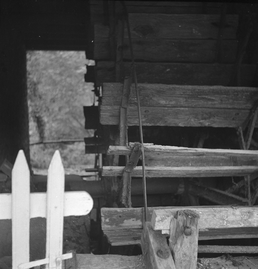 Minihy-Tréguier, le Guindy : moulin de Keraliou surnommé "moulin Le Bourva" en référence au propriétaire, détail de la roue à aubes, photographie de 1973Immatriculation
