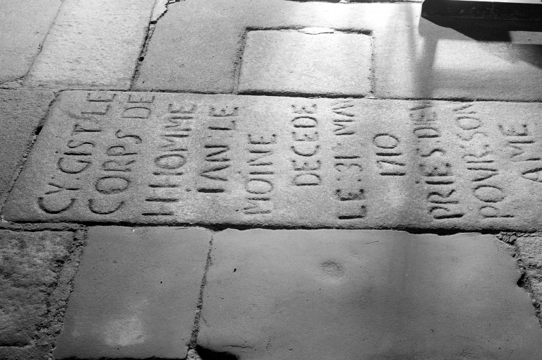 Intérieur, dalle funéraire n°6 : vue générale.Immatriculation