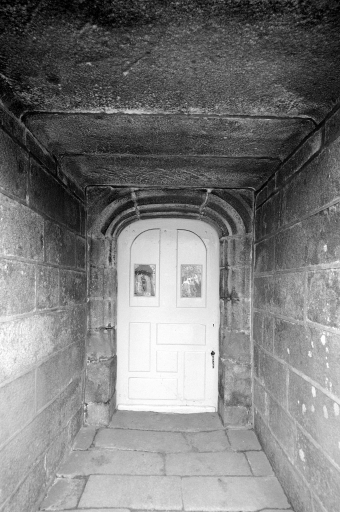 Aile centrale, façade nord, détail porte.Immatriculation