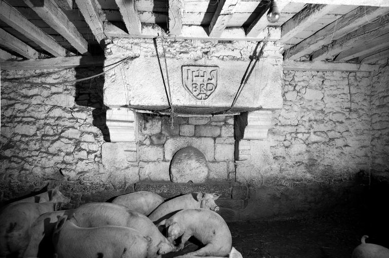 La Herblinais - Maison, cheminée de la porcherie, vue générale.Immatriculation