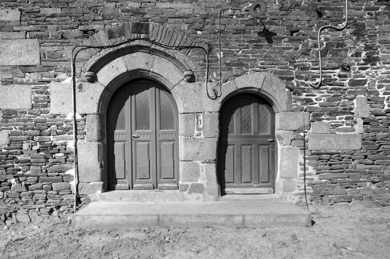 Façade sud, détail des portes.Immatriculation