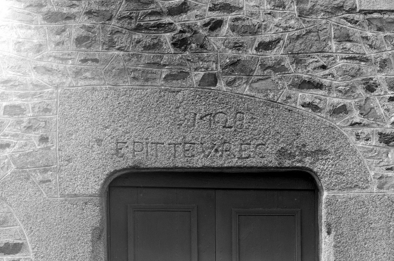 Façade sud-est, inscription, vue de détail.Immatriculation