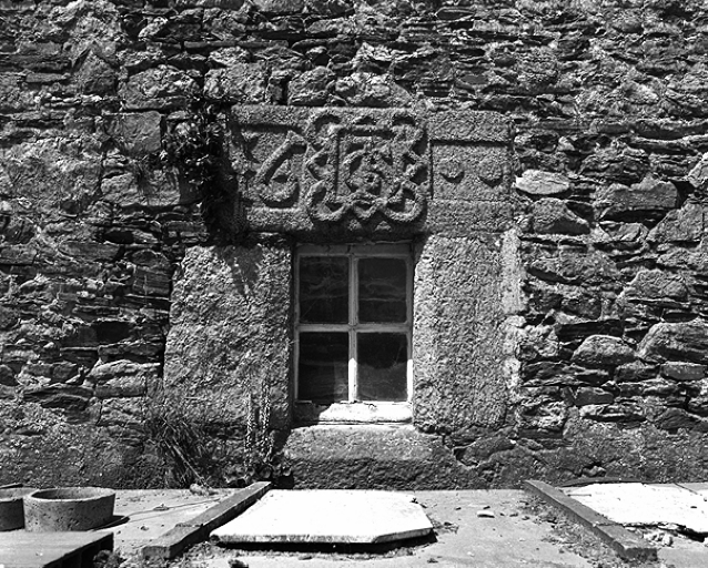 La Belle Issue : linteau en remploi daté 1600 avec marque de marchand (cliché 1973)Immatriculation