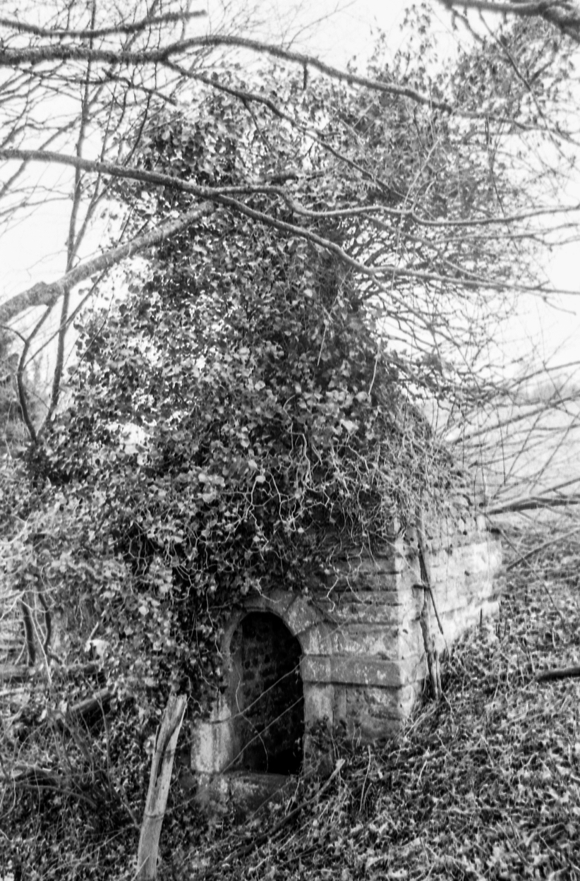 Fontaine en forme d'oratoire à toiture pyramidale (état en 1973)Immatriculation