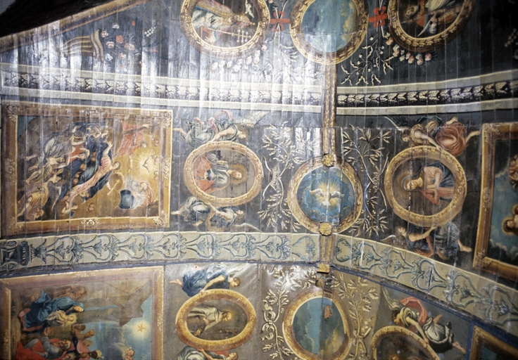 Ensemble de peintures de plafond A, nef sud, partie est : vue générale.Immatriculation