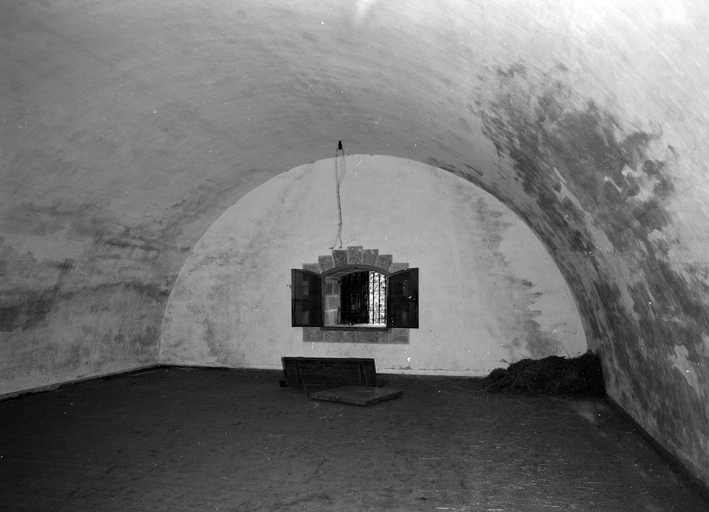 Le Palais, citadelle, magasin à poudre de l'Avancée, étage de la chambre de stockage, état dans les années 1970.Immatriculation