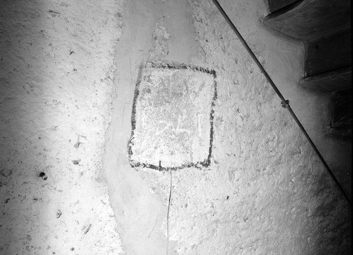 Façade nord, détail de l'inscription du mur ouest (en arrivant au grenier) (IA00008261)Immatriculation