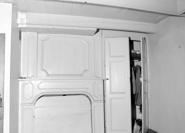 Rez-de-chaussée à gauche du couloir, pièce ouest sur cour, vue générale de la cheminée et des boiseriesImmatriculation