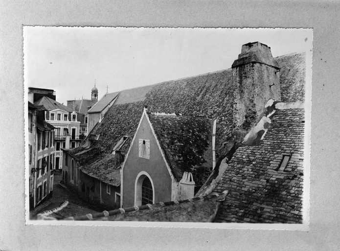 Vue de l'élévation sud de l'ancienne église après incendie, prise de la rue du calvaire, collection PressardImmatriculation