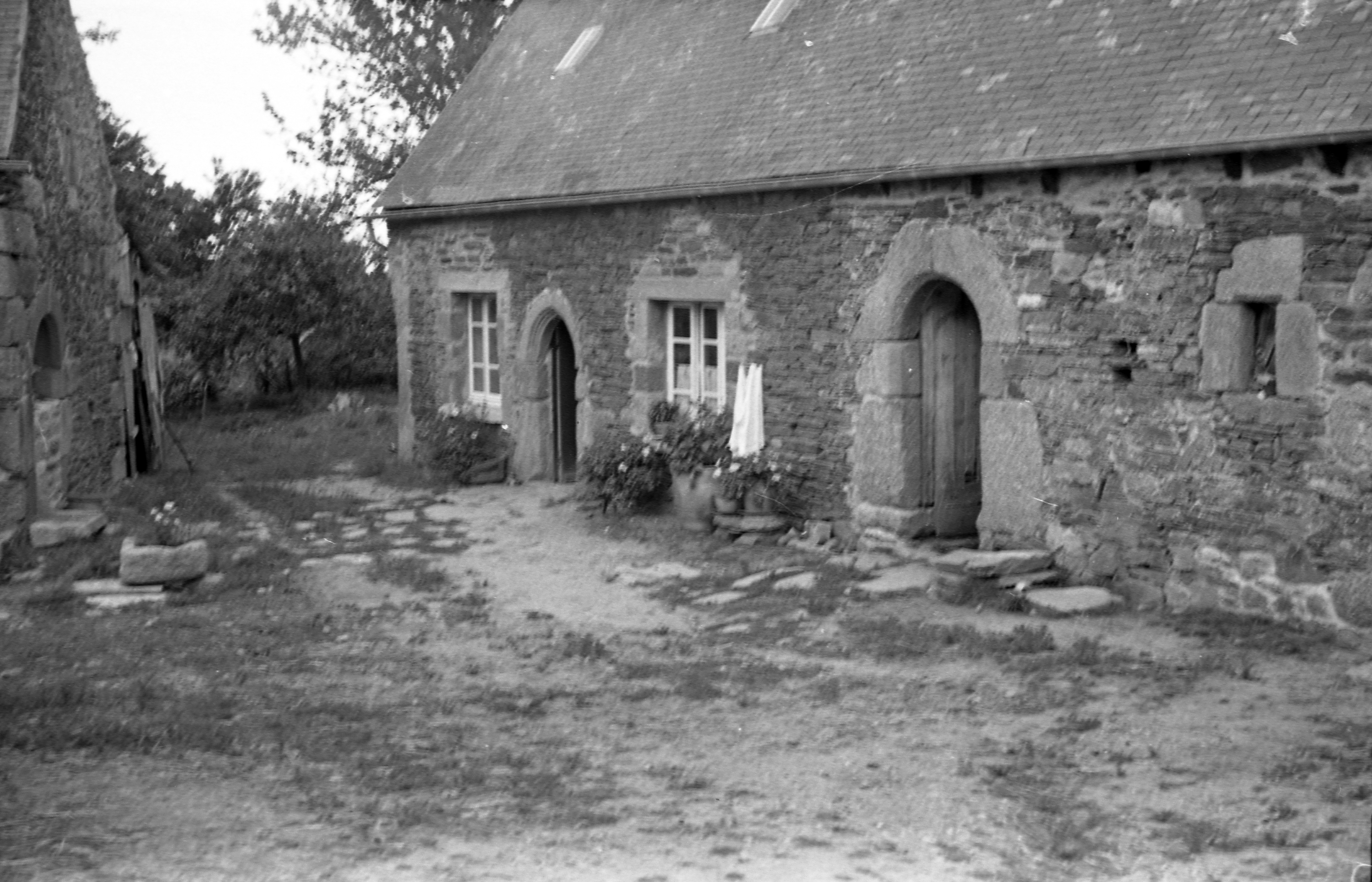 Plouzélambre, Kermeur Huellan : logis, photographie de 1974. Le bâtiment est datable du 16e siècle (porte en arc brisé) et (ou) du 17e siècle (porte en arc plein cintre), percement des fenêtres datable des années 1960Immatriculation