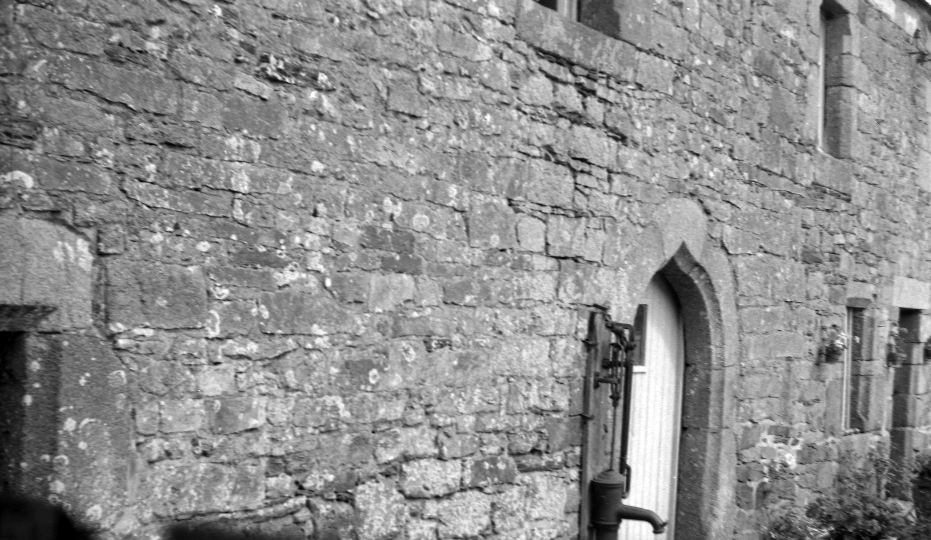 Plouzélambre, le bourg : manoir, détail de l'élévation antérieure orientée vers le sud, photographie de 1974Immatriculation